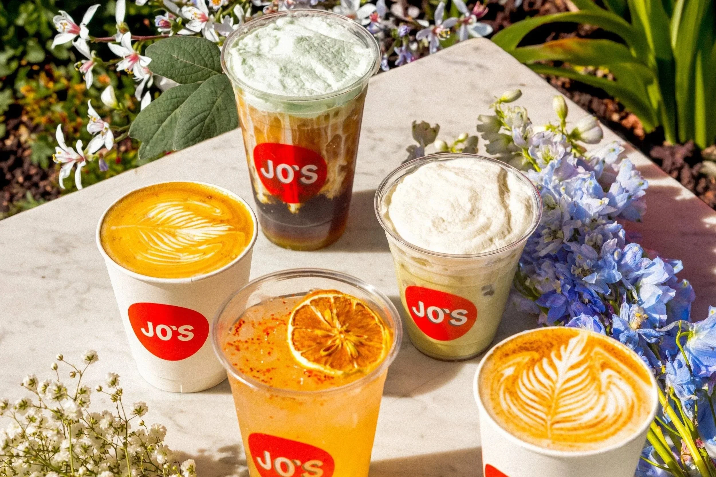 Spring has sprung. Swing by your local Jo’s to taste the season. Our spring drink lineup: Candied Almond Mocha, Sea Salt Lavender Latte, Honey Pistachio Cold Brew, Iced Berry Chantilly Matcha, & Hot Honey Lemonade. Available now for a limited time.